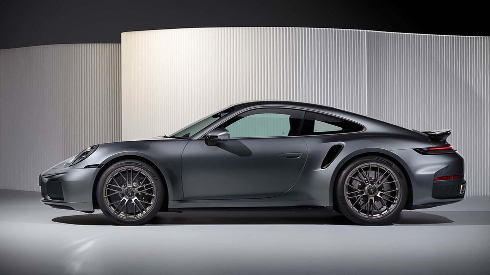 10 Septembre 2025 : Au Salon de Munich, Porsche débarque avec sa 911 Turbo S restylée. C’est en fait, une évolution mécanique majeure pour la célèbre sportive. Comme la 911 GTS T-Hybrid, cette 911 Turbo S type 992 phase 2, est à présent, un véhicule full hybride. Dommage, elle ne pourra pas fonctionner en mode 100% électrique, le système T-Hybrid étant avant tout, dédié à la performance. Le Flat 6 3.6L Bi-Turbo (cylindrée légèrement en baisse), profite de Turbos électriques, et d’un moteur électrique de 82ch et 188nm de couple (batterie de 1.9kWh), intégré à la boîte de vitesse PDK à 8 rapports. Résultat, la puissance passe de 650ch à 711ch, et le couple est bridé à 800nm. Malgré 85kg de plus sur la balance, ce monstre abat le 0 à 100km/h en 2.5s, le 0 à 200km/h en 8.4s, mais la vitesse maxi est en léger retrait, avec 322km /h au lieu de 330. Transmission intégrale, suspensions pilotées, Porsche améliore son contrôle de stabilité PDCC, qui fonctionne à présent sur un réseau 400 volts. Il maîtrise plus rapidement les mouvements de caisse. Le système de freinage carbone céramique a été renforcé. Cette 911 Turbo S T-Hybrid a déjà fait parler la poudre sur la boucle du Nurburgring (7mn03s92), avec un temps inférieur de 14s, par rapport à la Turbo S actuelle. A l’instar de la 911 GTS T-Hybrid, la Turbo S adopte les mêmes ouïes, au niveau du bouclier avant. Elles se ferment ou s’ouvrent, selon les conditions de roulage. Le constructeur de Stuggart propose également, des sorties d’échappement en titane redessinées (coupé), des feux discrètement retouchés, et des inserts de teinte grise (Turbonite) habillent quelques éléments intérieurs et extérieurs. Comme on pouvait s’y attendre, les tarifs sont en hausse (d’environ 25000€), pour atteindre 275 400€ concernant le coupé, et 289 700€ pour le cabriolet. Et, inutile de rêver, malgré une consommation mixte en légère baisse avec ses 11.6L au 100km (262gCO2/km), le malus écologique sera toujours de 70 000€ en France.