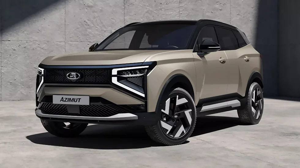 20 Juin 2025 : Le groupe russe Avtovaz, est assez discret depuis 2022, après le déclenchement de la guerre en Ukraine. Maison mère de la marque Lada, elle a été nationalisée la même année, après le retrait de son actionnaire principal, le groupe Renault-Nissan. En 2025, Lada nous propose néanmoins, ce nouveau modèle, prénommé Azimut. On ne sait pas vraiment sur quelle base technique elle repose. On rappelle que la marque coopérait très étroitement avec Renault et Dacia, à l’époque. Ce Lada Azimut est en tout cas un SUV, d’apparence moderne. On remarque le style très musculeux au niveau des ailes avant et arrière. La face avant très carrée, se pare d’une grosse signature lumineuse en C, la garde au sol est généreuse (20.8cm), on dispose de jantes en 18 pouces, et la poupe est assez élégante, avec un éclairage stylé à bandeau lumineux. Dans l’habitacle, on découvre une planche de bord, tout aussi moderne, avec une grande instrumentation numérique, un volant deux branches, de nombreux inserts en plastique type alu, des commandes physiques pour la climatisation, et un écran central tactile de 10 pouces, avec une interface développée par Sber, le géant local de la « Tech ». Sous le capot, c’est du classique, avec deux blocs atmosphériques de 1.6L et 1.8L, développant respectivement, 120ch et 132ch. Ils sont associés à une boîte manuelle à 6 rapports ou une unité automatique type CVT. La version haut de gamme, se dote d’un bloc 1.5 Turbo de 150ch et d’une boîte automatique à convertisseur. Dommage, cet Azimut ne proposera pas de transmission intégrale, un équipement souvent indispensable en Russie, surtout en hiver.