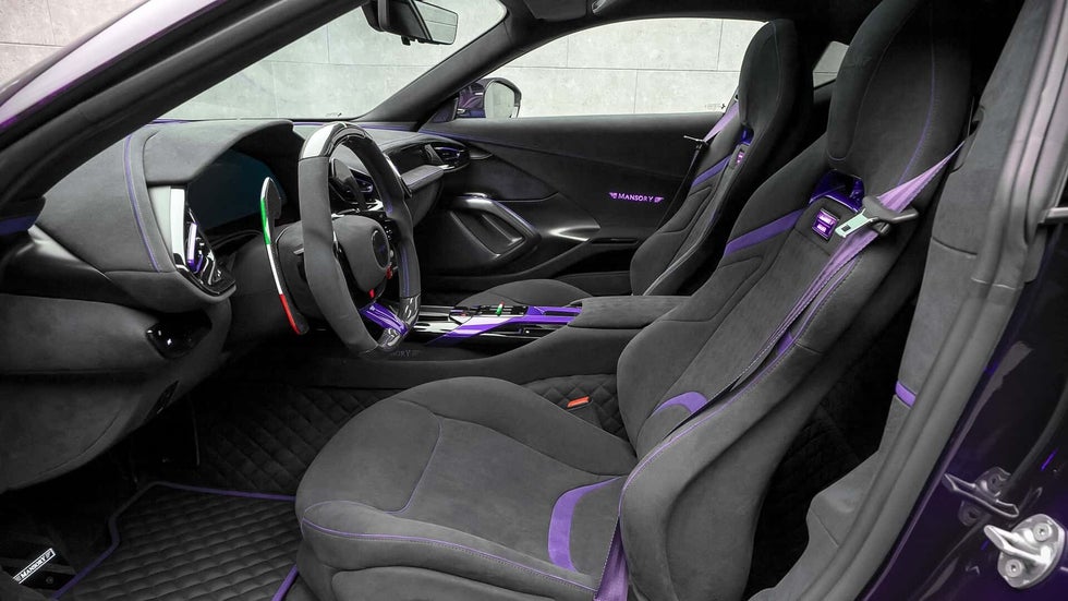 27 Septembre 2025 : Si un designer souhaite un jour, défigurer un véhicule, un stage chez Mansory sera alors indispensable. Le célèbre préparateur allemand, a encore frappé, en s’attaquant cette fois-ci, à la Ferrari 12Cilindri. Le coupé sportif italien, digne héritière de la Daytona, se voit affubler, d’un effroyable kit carrosserie. Le carbone avec effet marbré, c’est le summum du mauvais goût, et Mansory en est naturellement friand. Un diffuseur arrière caricatural, des flaps latéraux mal intégrés, des rajouts de carbone incompréhensible sur les ailes avant, un bouclier tout aussi horrible, des rétroviseurs ridicules, et un élément central disgracieux, sur le capot moteur, on peut également noter le manque total d’élégance, dans le choix des couleurs. Drapeau italien sur toute la longueur du véhicule, des inserts dorés à foison, et une teinte bi-ton sombre, aucune de ses couleurs, n’est assortie. L’habitacle paraît presque sobre, avec de l’alcantara gris, de nombreuses touches violettes, quelques inserts en carbone, un pédalier spécifique, et des tapis de sol matelassés. Côté technique, cette Mansory Equestre, se dote de jantes monoblocs allégées, et d’une monte pneumatique très tendre. La ligne d’échappement est modifiée, tout comme la cartographie moteur. Résultat, le V12 6.5L passe de 830 à 855ch, et le couple, de 678nm à 730nm.