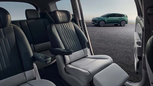 25 Juin 2025 : On pensait que cet énorme SUV électrique, resterait cantonner aux marchés américains et asiatiques. Finalement, Hyundai importera son Ioniq 9 en Europe, notamment en France. Les volumes de ventes ne seront pas impressionnants sur le vieux continent, et c’est un peu normal, quand on analyse les dimensions de ce beau bébé. Reposant sur la plate-forme E-GMP, qu’elle partage avec son cousin Kia EV9, ce Hyundai Ioniq 9, mesure 5.06m de long, 1.98m de large, 1.79m de haut, pour un poids à vide, de 2549kg. Son empattement gigantesque de 3.13m, permettra d’accueillir confortablement, 6 ou 7 passagers. La capacité de chargement varie de 620 à 1320 litres, bref, un vrai déménageur. Le client pourra choisir la version d’entrée de gamme, propulsion, de 218ch, associée à la seule batterie disponible, de 110.3kWh. L’autonomie annoncée est alors de 620km. Il faut savoir que cette batterie encaisse une charge de 11kW en AC, et 350kW en DC. Hyundai proposera également deux versions à transmission intégrale (double motorisation), de 307ch ou 428ch. La liste des équipements, est archi-complète de série (Finition Creative), mais si vous optez pour la finition Executive ou Callygraphy, le constructeur coréen, ajoutera par exemple, un affichage tête-haute 12 pouces, une sellerie full cuir, des sièges ventilés au rang 1 et 2, le rétroviseur intérieur caméra, les jantes en 20 pouces ou 21 pouces, le toit ouvrant panoramique, le stationnement semi-autonome à distance, ou les rétro-caméras latéraux sur écran de 7 pouces. En France Métropolitaine, les tarifs iront de 69 900€ à 86 900€.