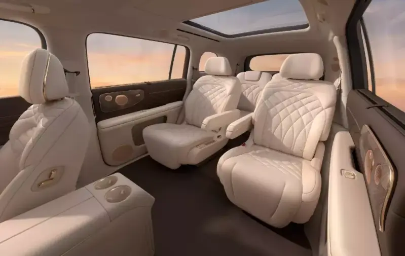 03 Février 2026 : Ca commence à être une habitude. La Chine présente régulièrement, des modèles de plus en plus luxueux, et technologiques. IM Motors est une filiale de MG, elle-même détenue, par le groupe SAIC. Cette IM LS9 Hyper, se présente comme un SUV innovant et très haut de gamme. Ce beau bébé mesure 5.28m de long, 2.00m de large, de 1.81m de haut, et son empattement est de 3.16m. Pas de panique pour les manoeuvres en ville, grâce à un système de 4 roues directrices, intelligent et entièrement électrique, proposant un angle de 24°. Résultat, ce LS9 Hyper affiche un rayon de braquage de 4.95m, bien inférieur à celui d’une citadine. Ce n’est pas tout, puisque nous disposons également d’un système de freinage électronique, permettant une récupération d’énergie record au freinage, évaluée à 100%. A cela, IM Motors ajoute une suspension pneumatique à double chambre, avec 150mm de course. Sous le capot, on dispose d’une motorisation électrique, avec prolongateur d’autonomie. Le petit 4 cylindres 1.5L Turbo de 153ch est peu enthousiasmant, mais il n’est pas relié aux roues. Il a pour mission, de recharger la batterie de 65.9kWh, quand cette dernière est vide. Sur le train avant, on a droit à un bloc électrique de 215ch, auquel il faut ajouter, les deux moteurs électriques arrière, de 261ch chacun. Le constructeur ne communique pas, sur la puissance cumulée. En mode électrique, on peut parcourir 308km, selon le cycle chinois CLTC, avant que le moteur thermique ne s’active. A bord, on est plongé dans une atmosphère très premium, avec des sièges massants aux 6 places, un chauffage au sol, un système Bang&Olufsen, des matériaux d’une qualité exceptionnel, et de nombreux écrans. Une tablette de 27.1 pouces devant le conducteur, un écran de 15.6 pouces devant le passager, et une unité de 27 pouces avec qualité 5K, pour les passagers arrière. Le constructeur propose même, une douche en option, intégrée au hayon. Pour votre sécurité, le véhicule est équipé de systèmes d’aides à la conduite, comprenant une navigation avec pilote automatique, un stationnement automatique, et un système radar laser, qui scrute l’environnement, en permanence.
