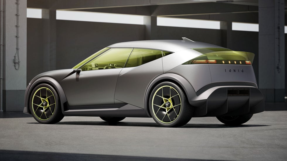 11 Septembre 2025 : Hyundai, une des marques les plus innovantes de ces dernières années, présente le concept Three, au Salon de Munich. Et chez le constructeur coréen, tous les concepts ont une finalité, avec des ingénieurs qui concoctent une berline dynamique coupé électrique. Cette dernière devrait s’appeler Ioniq 3. Hyundai dispose déjà d’une gamme de crossover électrique, assez large. L’arrivée d’une berline compacte dynamique, serait donc, une excellente surprise. MG 4, Renault Megane E-Tech, futur VW Golf Electric, Hyundai prépare son offensive. De profil, impossible de ne pas faire un rapprochement, avec l’atypique coupé asymétrique, Veloster, produit dans les années 2010. Ce Hyundai Concept Three, opte lui, pour des portes à ouverture antagoniste, une particularité que l’on ne retrouvera probablement pas, sur le modèle de série. Une carrosserie avec de grandes surfaces lissées, un profil fastback, une grille de calandre en pixels, des feux arrière de même type, des passages de roue marqués, le style est définitivement sportif. Hyundai annonce qu’il ressemble à 80%, au modèle de série, mais on ne sait pas encore si on aura affaire à une pure berline, ou un crossover sportif. On sait par contre, que ce futur Ioniq 3, reposera sur la plate-forme E-GMP 400V du groupe, qu’il partagera avec le Kia EV3. On peut donc s’attendre à des batteries d’une capacité de 58 ou 81kWh, et une motorisation électrique d’entrée de gamme de 204ch, positionnée à l’avant. Impossible de se faire une idée de la future planche de bord, ce concept Three nous propose pour le moment, une atmosphère inspirée des jeux vidéo des années 80. Le modèle de série étrennera le nouveau système multimédia Androïd Pleos, avec compatibilité Applecarplay Ultra. Ce véhicule débarquera sur nos routes, à la fin de l’année prochaine, avec un site de production, basé en Turquie.