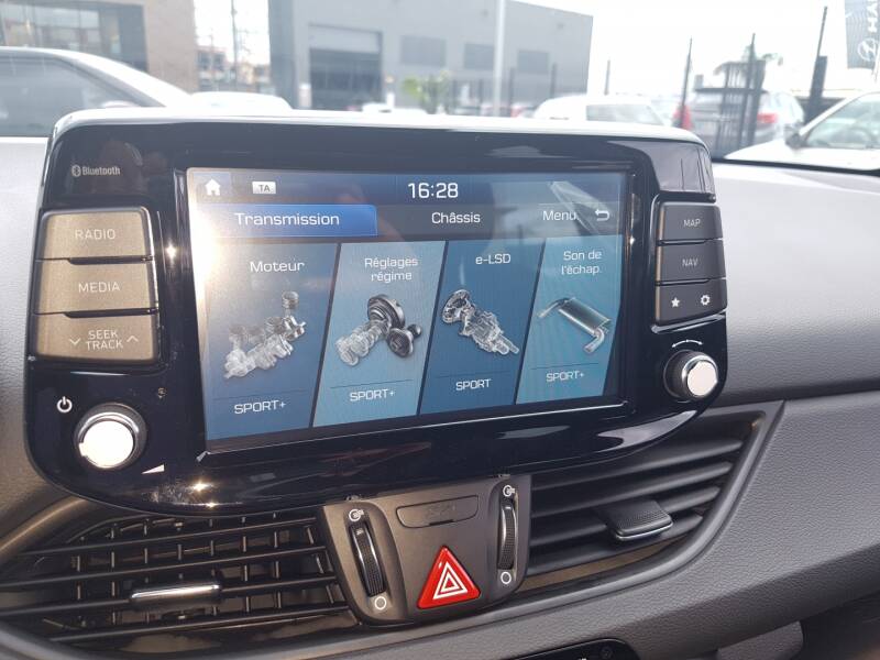 Pas de fioritures dans l’habitacle, on a bien du mal à sentir une quelconque ambiance sportive, et c’est bien dommage. La finition est correcte, l’ergonomie excellente, et l’instrumentation est complète. La i30n se distingue par son pédalier alu, ses deux boutons supplémentaires sur le volant pour les paramètres de conduite et la sellerie est spécifique. Vous aurez suffisamment d’espace pour balader votre famille le dimanche, et le coffre de 395 litres est toujours aussi pratique. On apprécie fortement toute la télémétrie mise à disposition, afin de mieux cerner vos données de conduite, mais ça reste utilisable surtout sur circuit. La barre anti-rapprochement (pack-performance+) dans le coffre annonce la couleur.