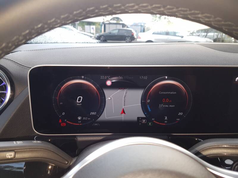 L’équipement de cette finition Progressive Line comprend le frein de parking automatique, les différents airbags, l’alerte de franchissement de ligne, le détecteur de somnolence, le lecteur de panneaux, l’assistant de stabilisation par vent latéral, la caméra de recul HD, le capteur de pluie et de luminosité, le contrôle de pression des pneus, les projecteurs à LED, le regulateur de vitesse, la climatisation auto bi-zone, l’écran multimédia 10.25 pouces avec interactions intelligents, l’ouverture et le démarrage sans clé, le hayon électrique avec fonction main-libre, MBUX avec borne Wifi, profil personnalisé, et fonctions prédictives), le pavé tactile Touchpad, les tapis de sol en velours, les jantes alu 17 pouces Vanadium, la navigation, les rétros rabattables électriquement, la sellerie cuir/tissu, le toit panoramique ouvrant, le volant sport multifonctions, les sorties d’échappement en chrome. Modèle d’essai à 61 235€TTC.