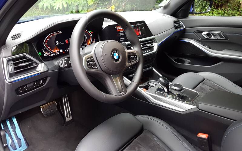 L’équipement du pack M-Technic comprend les 8 airbags, l’ouverture et le démarrage sans clé, le régulateur de vitesse adaptatif avec fonction embouteillage, la climatisation trois zones, le BMW Live Cockpit (Ecran TFT 12.3 pouces), le frein de parking électrique, les radars de stationnement av et ar, les feux arrière à LED, l’éclairage d’ambiance, les rétroviseurs rabattables électriquement, le système Hifi, le connected Drive, l’alarme antivol, la recharge par induction de smartphone, les sièges av électriques à mémoire, la sellerie alcantara/Sensatec, les jantes alu en 19 pouces, les étriers de freins M-Sport bleus, les inserts en aluminium, le volant M cuir, le pack aérodynamique M, la direction DirectDrive, les projecteurs Laser adaptatifs, la commande par gestuelle, le détecteur d’angle-mort etc….