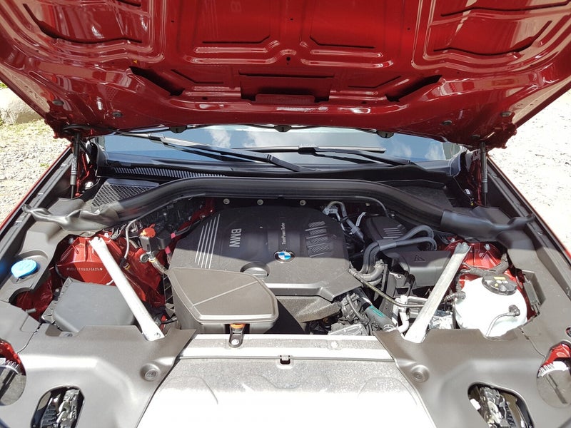 Sous le capot, on retrouve le classique 4 cylindres 2.0 diesel qui développe 190ch à 4000tr/mn et 400nm de couple à 1750tr/mn. Le véhicule mesure donc 4.75m de long, 1.92m de large, son empattement est de 2.86m, et sa garde au toit de 1.62m. Son poids est de 1815kg. Le 0 à 100km/h est effectué en 8.0s et il croise à 213km/h. Le X4 dispose bien sûr de la transmission intégrale xDrive et de la boîte automatique à 8 rapports. On ajoute de série, la direction DirectDrive à démultiplication variable. En option, vous pourrez vous offrir la suspension pilotée, les freins M-Sport, et le différentiel arrière pour plus de dynamisme. BMW annonce une consommation moyenne de 5.6L au 100km (8.5L lors de notre essai) pour des rejets de CO2 de 146g/km.