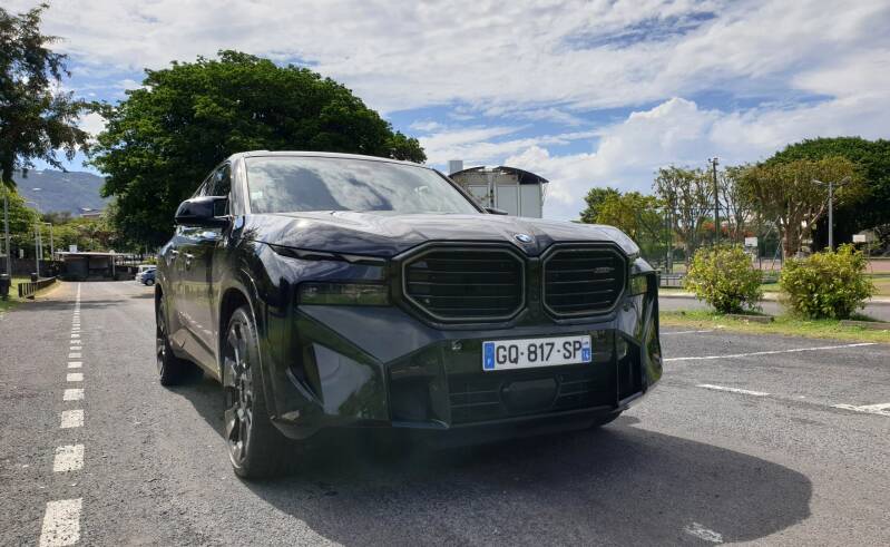Ce modèle inédit de la gamme à l’hélice, est assez particulier. Il a été entièrement conçu par la division sportive Motorsport, qui fête en 2023, ses 50 ans. Ce modèle spécifique se présente donc sous la forme d’un énorme SUV, qui met en avant toutes les technologies à disposition chez le constructeur, tout en le dotant du bloc moteur le plus puissant jamais vu dans la gamme (pour le moment). Pas de sportivité à l’extrême pour ce mastodonte de la route, BMW Motorsport avait pour objectif de concevoir un engin ostentatoire, monstrueux, hyper puissant, ultra-luxueux, et qui prend soin de ses rejets de CO2, en se dotant de la technologie hybride rechargeable. On s’est donc glissé avec plaisir derrière le volant de ce XM, qui sera un véhicule très exclusif à la Réunion, avec un objectif de vente d’environ une quinzaine d’unités par an.