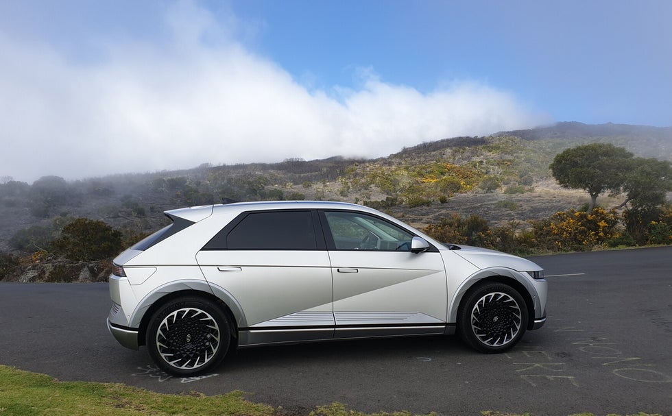 Ce Ioniq 5 n’a pas pour vocation d’arpenter les chemins de terre. Malgré une garde au sol légèrement surélevée, c'est surtout une grande voyageuse. C'est peut-être un véhicule électrique, mais elle peut enchaîner les kilomètres en toute tranquillité. Tomber en panne d’énergie à la Réunion, c’est le faire exprès. Selon le mode de conduite et la route empruntée, elle peut avaler entre 370 et 420km en conduite réelle, ce qui devrait suffire. Personnellement, en abusant des chemins sinueux et de la pédale de droite, nous avons consommé 18.2kWh au 100km, ce qui représente une autonomie de 399km en se basant sur la charge utile de la batterie. Et puis, quel silence et quel confort à l’intérieur de ce crossover. Nous ne sommes pas perturbés par les bruits aérodynamiques, et les bruits de roulement sont plutôt discrets malgré nos jantes en 20 pouces. Le châssis e-GMP est pas mal non plus, avec un comportement routier assez neutre, malgré la masse en mouvement. Ce Ioniq 5 demande à ne pas forcer sur le train avant en entrée de virage au freinage, de garder une certaine vitesse de passage, et de remettre les gaz gentiment afin que sa transmission arrière vous remette sur le droit chemin, en contrant le sous-virage. Le sport, ce n’est pas son truc, mais le comportement sain et le couple omniprésent, poussent parfois à hausser le rythme. Le poids est bien présent, mais Hyundai n'a pas réussi à faire mieux pour la catégorie, malgré cette plate-forme spécifique. On se consolera, en se disant qu'il est 100 à 150kg moins lourd que la conurrence, et c'est pas mal. Le rayon de braquage en manoeuvre ou en ville, est un peu plus problématique, avec un véhicule qui a besoin d'espace.