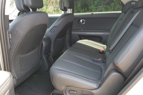 « Une voiture à vivre », vous vous rappelez certainement ce slogan, d’un grand constructeur français. Il colle parfaitement à l'agencement intérieur de ce Ioniq 5. Hyundai a réussi a concevoir un habitacle aussi clair que vaste, disposant en prime de nombreuses astuces. On a droit à cette planche de bord sans console centrale, qui met surtout en lumière, les deux grandes dalles numériques de 12.3 pouces. L'instrumentation, tout comme l’écran tactile central, sont paramétrables à son bon vouloir. Pour augmenter cet effet d'espace, le tunnel central est également aux abonnés absents, et on se retrouve avec ce pratique accoudoir coulissant jusqu’aux places arrières. Les sièges avant peuvent se transformer en d’agréables fauteuils relaxants avec un repose mollet. Le véhicule est également très large, ce qui permet à la banquette arrière d’accueillir très confortablement 3 passagers. Cette banquette coulisse électriquement et les dossiers sont inclinables. Même si ce Ioniq 5 ne vise pas la catégorie des SUV premiums, la finition reste d’un très bon niveau, avec des matériaux à portée de main, doux, et visuellement agréables. On parle là, de matières recyclés selon la marque coréenne. Côté capacité de chargement, c'est tout aussi impressionnant avec un coffre de 527 litres, qui une fois la banquette rabattue et le plancher parfaitement plat, monte à 1587 litres. En prime, Hyundai ajoute un espace de rangement de 57 litres sous le capot avant pour les versions deux roues motrices.