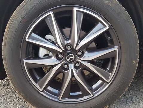 Mazda affine encore le style de son SUV. Il est plus tranchant, grâce notamment à, ce long capot qui épouse cette calandre creusée, ce jonc chromé qui va fondre dans les feux, ces feux justement plus fins, et ce bouclier plus imposant. On note la rainure de profil caractéristique du Kodo Design. Enfin, la poupe, avec son éclairage à LED plus stylé et son hayon massif, dynamise encore l’ensemble. Attention, on remarque également sa garde au sol généreuse de 21cm, qui annonce de bonnes dispositions pour les sorties en tout-chemin.