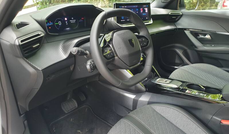Nous disposions donc du tout nouveau bloc électrique, d’origine Nidec, qui développe 156ch et 260nm de couple. Il est associé à une batterie de 54kWh Brut, soit, de 50.8kWh net. Le véhicule mesure 4.30m de long, 1.77m de large, sa garde au toit est de 1.53m, et son empattement, de 2.61m. Il pèse 1475kg à vide et chausse du 215/60R17. Le 0 à 100km/h est effectué en 9.1s, et la vitesse de pointe est de 150km/h. Peugeot annonce une autonomie de 406km.
