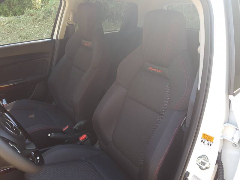 Par rapport à la version d’entrée de gamme, ce modèle Sport ajoute un bouclier plus musculeux, un joli éclairage à LED, une calandre type nid d’abeille, une lame avant, des bas de caisse et un diffuseur imitation carbone. N’oublions pas les magnifiques jantes en 17 pouces bi-ton, ainsi que les typiques double sortie d’échappement. C’est beau, c’est chic et pas trop racoleur. Bref, c’est comme ça qu’on l’aime cette Swift. Elle satisfera les amoureux de petites sportives, mais tapera également dans l’oeil de la gente féminine.