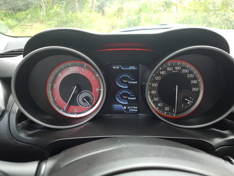Elle s’équipe donc d’un bloc 4 cylindres de 1373cm3 turbocompressé qui développe 140ch à 5500tr/mn et 230nm de couple à 2500tr/mn. Elle mesure 3.89m de long, 1.74m de large, sa garde au toit est de 1.50m, et son empattement de 2.45m. C’est une traction, secondée par une boîte de vitesse à 6 rapports. Le gros atout reste le poids minime de cet engin, avec ses 975kg. Elle chausse du 195/45R17. Le 0 à 100km/h est avalé en 8.1s et elle croise à 210km/h. Suzuki annonce une consommation mixte de 5.6L au 100km (8.8L en conduite dynamique) pour des rejets de CO2 de 125g/km.