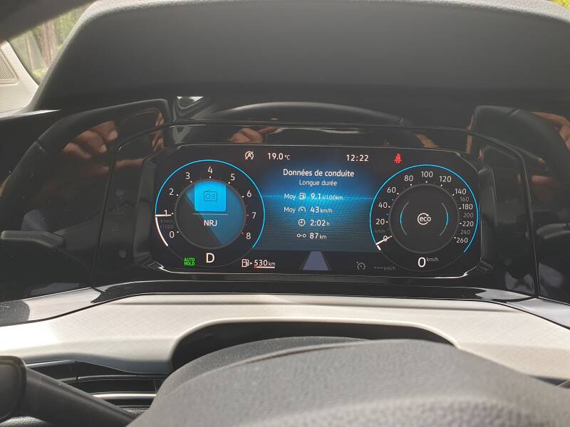 Notre modèle d’essai était donc équipé du 3 cylindres de 999cm3 Turbo, qui développe 110ch et 200nm de couple à 2000tr/mn. Il est associé à un système d'hybridation légère 48V et à la boîte DSG7. Le véhicule mesure 4.28m de long, 1.79m de large, sa garde au toit est de 1.49m, et son empattement de 2.62m. Il pèse 1264kg. Cette Golf effectue le 0 à 100km/h en 10.6s et croise à 202km/h. Volkswagen annonce une consommation mixte de 5.2L au 100km (6.4L lors de notre essai) pour des rejets de CO2 de 122g/km.