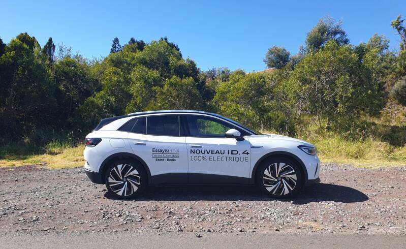 Volkswagen a souhaité rendre son SUV électrique, le plus souple et le plus agréable possible. Pas d’accélération foudroyante au programme, mais un véhicule qui relance énergiquement lors des relances, c’est peut-être la seule façon de contenir la consommation d’énergie. Ultra silencieuse, même sur route nationale, avec aucun bruit aérodynamique, l’ID4 vous rassure également, grâce à son panel d’aides à la conduite. Sur chemin dégradé, nous n’avons en prime, détecté aucun couinement au niveau du mobilier, nous prouvant une qualité de fabrication, digne de Volkswagen. Pas de finition bas de gamme à la Réunion, ni d’ID4 avec la petite batterie de 52kWh, cela implique bien évidemment un ticket d’entrée assez élevé. Ca reste tout de même un de mes coups de coeur du moment.