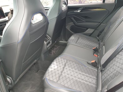 L’équipement de cette finition R-Line, comprend les câbles de recharge (domestique et type 2), l’instrumentation numérique 10 pouces, l’écran central tactile 12.9 pouces, les applications Applecarplay et Androïd auto sans fil, la navigation, le double chargeur par induction, la climatique trois zones, 4 ports USB-C, la caméra de recul, les radars av et ar, le maintien dans la voie actif, la surveillance des angles morts, le régulateur de vitesse adaptatif, les projecteurs à LED, les bandeaux lumineux av et ar, les feux arrière 3D, les feux directionnels, les vitres surteintées et accoustiques, l’ouverture et le démarrage sans clé, l’assistant de parking, l’alarme, le hayon motorisé, le toit ouvrant panoramique, les boucliers avant et arrière R-Line, les antibrouillards, les sièges Sport massants, le pédalier en aluminium, les jantes alu 19 pouces.