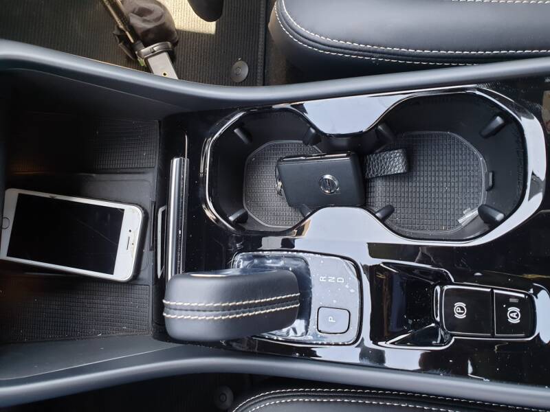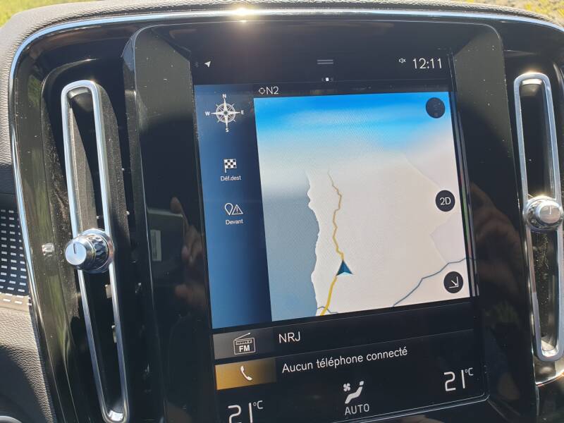Plutôt compact et rigide, le XC40 est suffisamment réactif au volant. Malgré un poids respectable, il reste maniable, dynamique, et la direction est à la fois douce et précise. A cause de la garde au sol de 21cm, Volvo a été dans l'obligation de raffermir l’amortissement. On craignait le pire avec nos jantes en 19 pouces, mais ce XC40 s'en sort pas mal côté confort. Dynamique oui, sportif non, puisque la double motorisation privilégie les bas et mi-régimes. Le moteur pousse tout le temps, mais régule très vite dans les tours. Le couple disponible pratiquement en permanence, peut également mettre à mal la motricité, et certains mouvements de caisse apparaissent lors d’un changement de cap rapide. Ce SUV compact Suédois s'apprécie surtout en conduite coulée, en étant capable de rouler à un bon rythme. En se servant astucieusement des modes de conduite, vous vous amuserez à abaisser les consommations, lors de long parcours, en adoptant une conduite vertueuse. Vous pouvez sauvegarder la charge de la batterie sur nationale, pour rouler en électrique en ville ou sur chemin montagneux. On déconseille le mode « Charge », qui va avoir tendance à faire exploser les consommations. En mode Performance, ce XC40 T5 Recharge a également un bon appétit. Sur notre parcours mixte, nous avons relevé un raisonnable 7.1L à la fin de la journée. Ce système hybride plug-in est au point, mais je m'attendais à récupérer un peu plus d'énergie en descente, en me servant de la position B de la boîte. Peine perdue, la jauge de la batterie faisant du surplace, avec un véhicule fonctionnant uniquement en mode hybride jusqu’à la fin de notre périple.