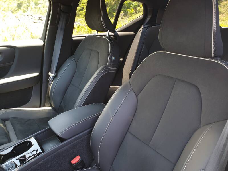 Cela fait des années, que Volvo séduit, grâce à l’agencement de ses planches de bord. Elles se ressemblent beaucoup d’un modèle à l’autre, mais elles respirent la qualité. Une instrumentation numérique 12.3 pouces, un grand écran central vertical de 9 pouces, cerné par les aérateurs, le degré de finition est d’un très bon niveau, et l’ergonomie fait appel aux moins de boutons possibles. Sur ce point, on se sent très vite à l’aise, malgré la quantité de menus à disposition. Afin de ne pas toucher aux côtes d’habitabilité, ce XC40 concentre tous ses éléments mécaniques sous le capot avant. Les blocs thermiques et électriques, la boîte de vitesse à double embrayage, la batterie est intelligemment intégrée au gros tunnel central. La banquette est un peu dur, et la place du milieu à l’arrière n’est donc pas forcément la plus confortable, mais ce SUV compact reste agréable à vivre. Le coffre cube toujours 460 litres sur cette version PHEV, mais il faut reconnaître que ce n’est pas le plus grand de la catégorie.