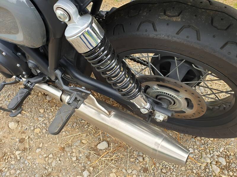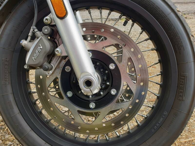 Bien sûr, un des morceaux de choix, c’est son gros bi-cylindre parallèle de 1222cm3 calé à 270°, à refroidissement liquide, avec un arbre en came en tête et 4 soupapes par cylindre. Très clairement, on dirait un copier/coller de la Triumph Bonneville. N’ayant pas essayé cette dernière, je n’aurai pas de point de comparaison, et si je me réfère uniquement à la fiche technique, je m’attends à un moteur très rond avec une sonorité d’une autre époque.