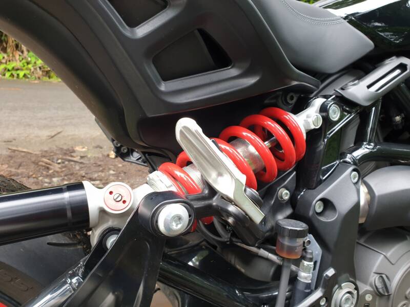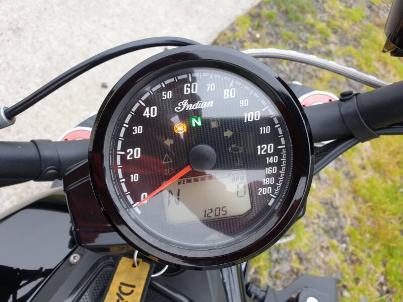 Indian FTR1200 S 18 990€ : Amortissement Sachs réglable, tableau de bord tactile, terminal média Bluetooth port USB, boitier Bosch IMU (anti-wheeling, traction control, ABS d’angle, 3 modes moteur), régulateur de vitesse.