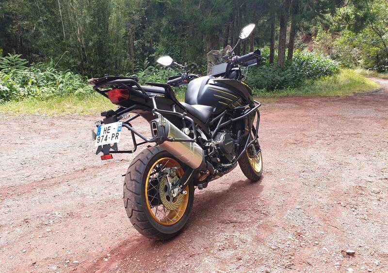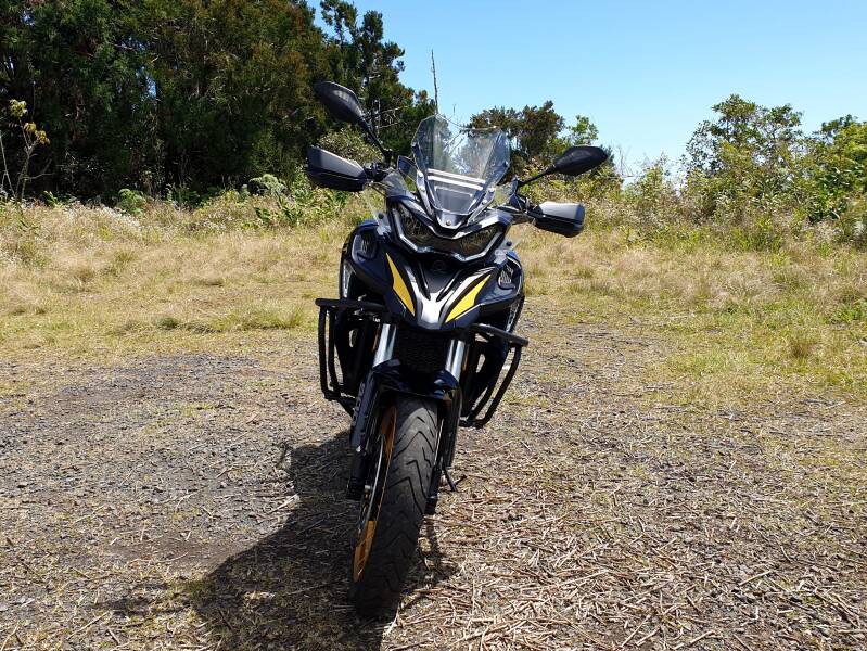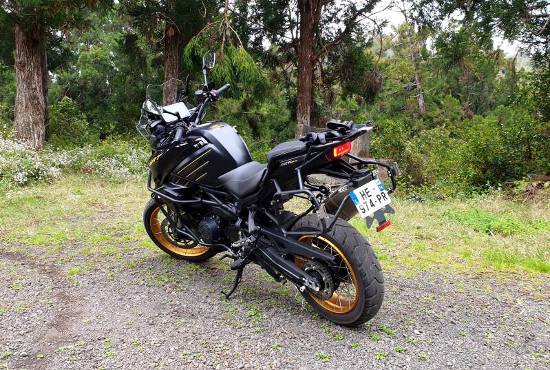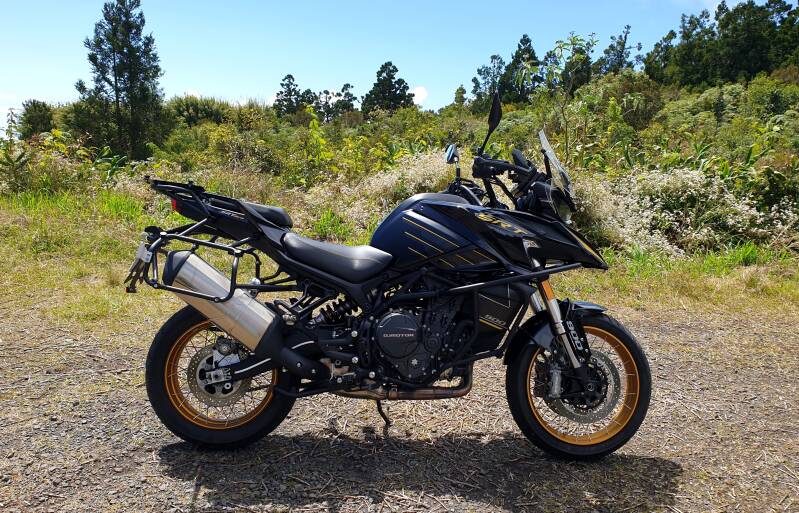 Un moteur linéaire, avec lequel on peut enrouler tranquillement entre 3000 et 7000tr/mn, sur les routes des hauts, une réserve de puissance suffisante quand on va chercher les limites du compte-tour, je n’ai pas été déçu, malgré son caractère très linéaire. Je suis beaucoup moins convaincu par la boîte vitesse, qui demande trop d’effort. Le châssis, bien né de ce trail routier, gomme parfaitement le poids. QJMOTOR a trouvé un excellent compromis, entre stabilité et maniabilité, sans dégrader le confort. On sent que cette moto a été conçu, pour faciliter votre quotidien. Et puis, elle est vendue toute équipée, à un tarif de moins de 13 000€. Là encore, il est compliqué pour la concurrence, d’aller chercher une chinoise, sur le rapport prix/prestations.